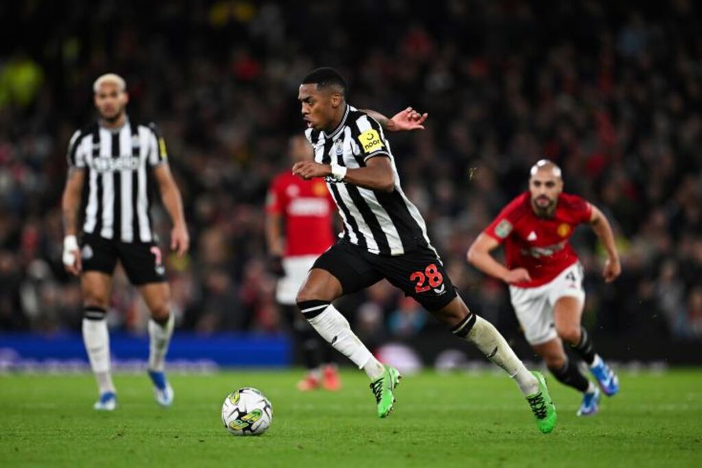| Le milieu de Newcastle Joe Willock sur le terrain de Manchester United en Coupe de la Ligue anglaise, le 1er novembre. |
