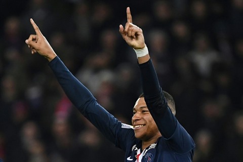 | L'attaquant du PSG, Kylian Mbappé, buteur contre Saint-Étienne en quart de finale de Coupe de la Ligue, le 8 janvier au Parc des Princes. |