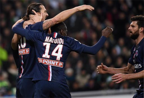 Au stade Geoffroy-Guichard, les Parisiens tenants du titre, toujours privés des "punis" Cavani et Lavezzi, a réussi à se sortir du guêpier vert à la faveur d'un but de sa star Ibrahimovic en seconde période.