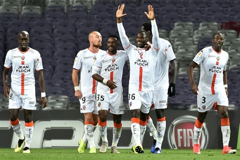 | Les joueurs de Lorient célèbrent la vitoire à Toulouse en Coupe de la Ligue, le 31 octobre. |