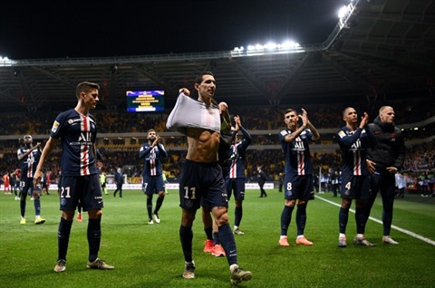 | Les Parisiens en communion avec leurs fans après la victoire sur Le Mans en 8e de finale de la Coupe de la Ligue à la MMA Arena, le 18 décembre. |
