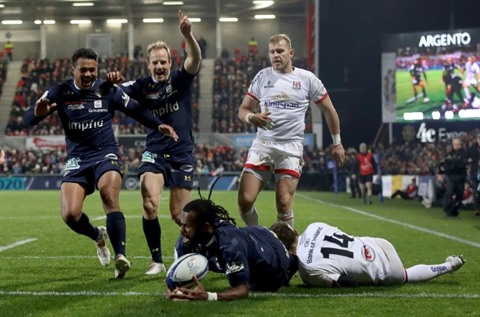 | L'ailier de Clermont Alvereti Raka inscrit un essai qui sera refusé pour en-avant sur le terrain de l'Ulster en Coupe d'Europe, le 22 novembre à Belfast. |