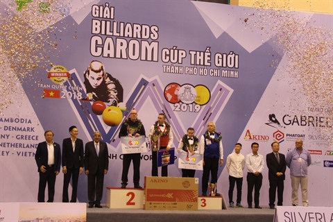 La Coupe du monde de billard de carom trois bandes 2019 a eu lieu du 20 au 26 mai à Hô Chi Minh-Ville avec plus de 149 sportifs de 18 pays et territoires de par le monde. L’équipe vietnamienne comprend 8 joueurs, dont Nguyên Quôc Nguyên (11e rang mondial), Trân Quyêt Chiên (3e rang mondial), Ma Minh Câm (23e rang mondial), Duong Anh Vu (31e rang mondial), Ngô Dinh Nai (14e rang mondial)…