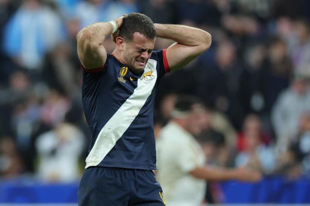 | La tristesse de l'ailier argentin Emiliano Boffelli après la défaite contre l'Angleterre, le 27 octobre au Stade de France. |