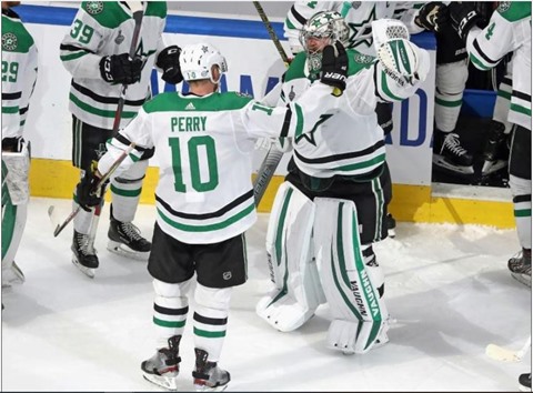 Comme ils ont mieux fini le match, les Stars l'avaient très bien débuté, ouvrant le score par Corey Perry en fin de premier tiers-temps, d'une petite pichenette qui a surpris le gardien.