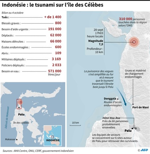 >>Indonésie: le bilan dépasse 1.400 morts, l'espoir de retrouver des survivants s'éloigne
