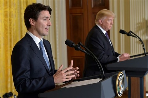 | Le Premier ministre canadien Justin Trudeau (gauche) et le président américain Donald Trump, à Washington DC le 13 février 2017. |