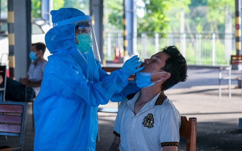 | Prélever l'échantillon pour le test de dépistage du COVID-19 à Cân Tho (Sud) . |