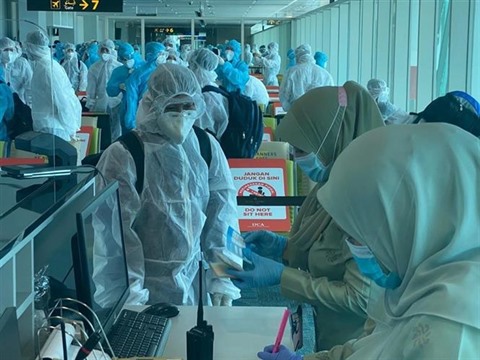 | Des citoyens vietnamiens rapatriés à un aéroport de Brunei, le 2 novembre. |