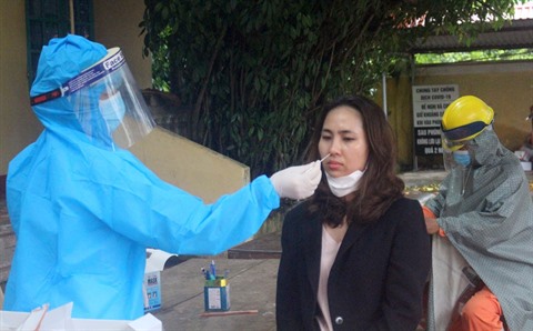 | Prélèvement d’échantillons pour le teste de dépistage du coronavirus à Thanh Hoa (Centre). |
