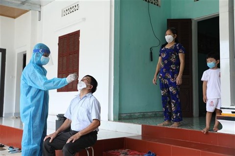 | Prise d’échantillons au service du test du COVID-19 pour un Hanoïen revenu de Hô Chi Minh-Ville. |