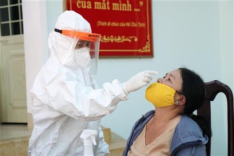 | Prélèvement d’échantillons pour le teste de dépistage du coronavirus à Buôn Ma Thuôt, chef-lieu de la province de Dak Lak (hauts plateaux du Centre). |