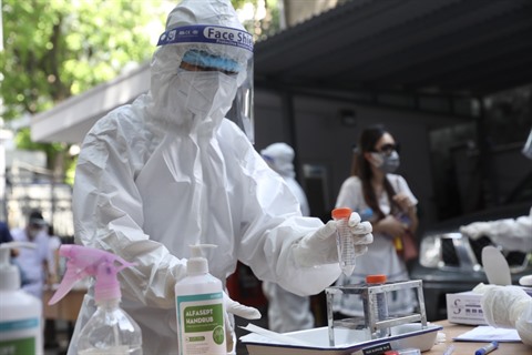 | Des agents du centre médical de l'arrondissement de Hai Bà Trung (Hanoï) prélèvent des échantillons pour les tests de dépistage du COVID-19 pour les personnes de retour de Hô Chi Minh-Ville, le 10 juille |