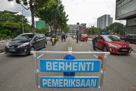 | La police contrôle les véhicules à Kuala Lumpur, en Malaisie, le 19 mars. |