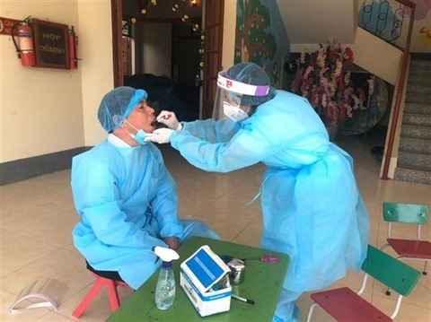 | Un agent médical prélève les échantillons pour le test rapide au COVID-19. |