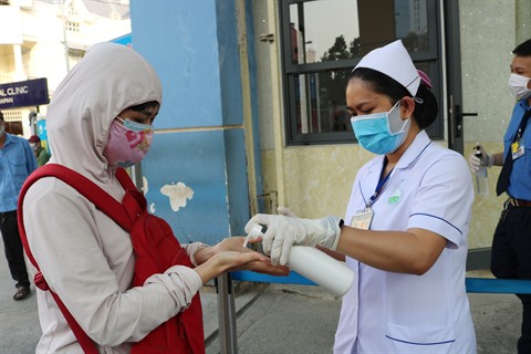 À l'Hôpital de dermato-vénéréologie de Hô Chi Minh-Ville depuis que l'épidémie de COVID-19 a progressé toutes ces mesures de prévention ont été mises en place : prise de température, désinfection des mains pour tous les patients et leurs proches, visiteurs et personnel médical dès l'entrée.