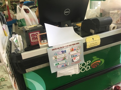 | Une affiche de sensibilisation sur la prévention et la lutte contre le COVID-19 au supermarché Co.op Mart à Hô Chi Minh-Ville. |