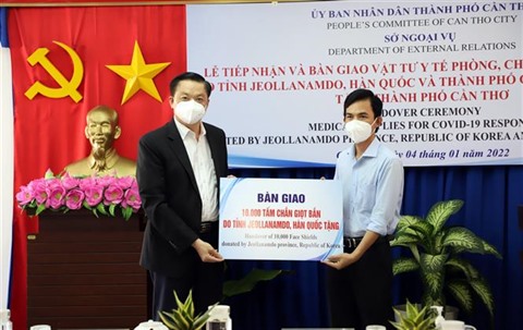 | Réception symbolique de don offert par la province sud-coréenne de Jeolla du Sud à Cân Tho, le 4 janvier. |