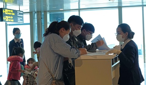 | Les passagers sud-coréens doivent faire une déclaration médicale le 25 février à l'aéroport international de Cam Ranh, province de Khanh Hoà (Centre), avant leur entrée au Vietnam. |