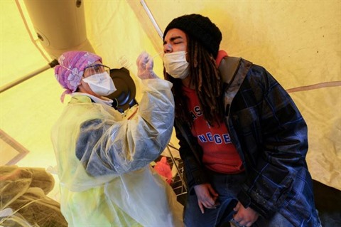 | Une infirmière fait un test au COVID-19 sur un jeune fêtard à Lieuron (Ouest de la France), le 2 janvier. |