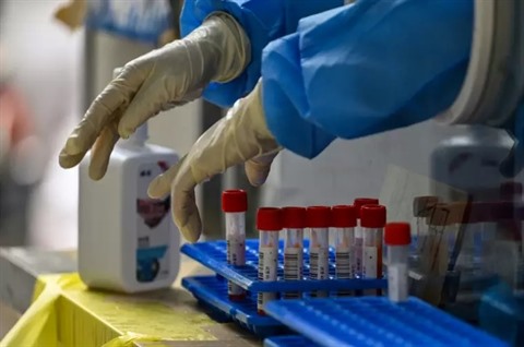 | Un travail de santé manipule des échantillons de prélèvements pour tester des cas de COVID-19 à Shanghaï, Chine, le 17 août. |