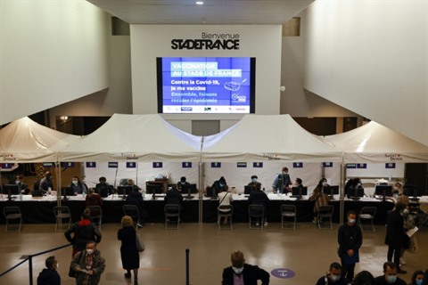 | Vue du vaccindrome du Stade de France, à Saint-Denis près de Paris, le 23 avril. |