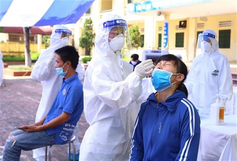 | Prélèvement des échantillons pour les tests du COVID-19 à Hanoï. |