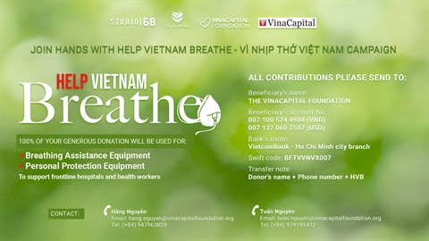 Le programme "Help Vietnam Breathe" (Aidez le Vietnam à respirer), mis en œuvre par VCF, vise à récolter des fonds pour l'achat de matériel et de fournitures médicales anti-épidémiques en faveur des structures médicales en première ligne dans le contexte où l'épidémie se prolonge et que le nombre de personnes infectées par le COVID-19 augmente rapidement, notamment à Hô Chi Minh-Ville.