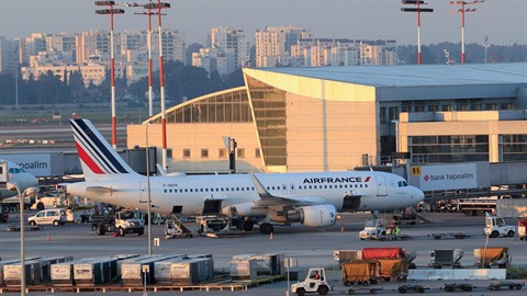 | Un avion de la compagnie française Air France sur le tarmac de l'aéroport Ben Gourion de Tel-Aviv, le 4 mars en Israël. |