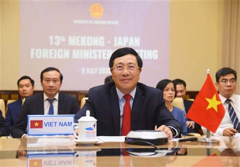 | Le vice-Premier ministre et ministre des Affaires étrangères Pham Binh Minh (centre) lors de la 13e conférence ministérielle Mékong - Japon, le 9 juillet. |