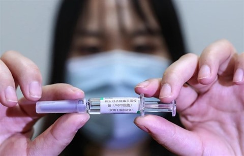 | Un échantillon de vaccin contre le COVID-19 du groupe China National Pharmaceutical. |