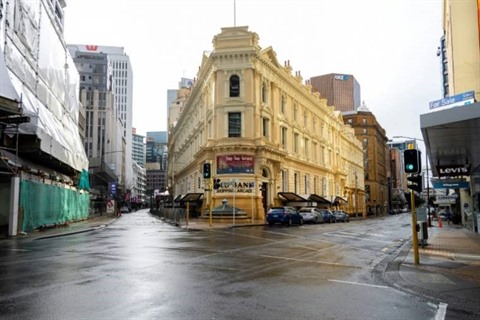 | Une rue déserte de Wellington pendant un confinement, le 18 août en Nouvelle-Zélande. |