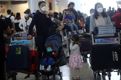| Des touristes portent des masques de protection à l’aéroport international de Nôi Bài à Hanoï. |