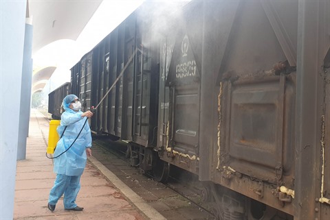 | Fumigation de wagons de marchandises à la gare internationale de Dông Dang dans la province de Lang Son. |