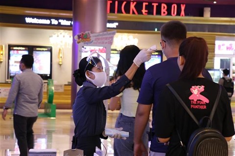 | Vérification de la température corporelle à Phnom Penh au Cambodge. |