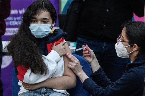 | Une filette chilienne se fait vacciner anti-COVID-19 à Santiago, le 27 septembre. |