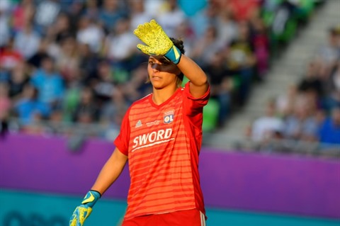 | La gardienne de Lyon, Sarah Bouhaddi, lors de la finale de la Ligue des champions contre le FC Barcelone, le 18 mai 2019 à Budapest. |