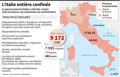 En Italie, le pays européen le plus touché par l'épidémie, le gouvernement a annoncé lundi soir 9 mars la suspension de toutes les compétitions sportives, et donc de la Serie A, jusqu'au 3 avril.