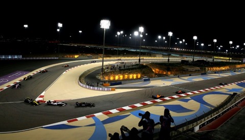 | Des pilotes en pleine course lors de la dernière édition du Grand Prix de Formule 1 de Bahreïn, le 31 mars 2019 à Manama. |