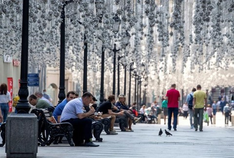 Des personnes profitent du soleil à Moscou, le 8 juin. Photo : AFP/VNA/CVN |