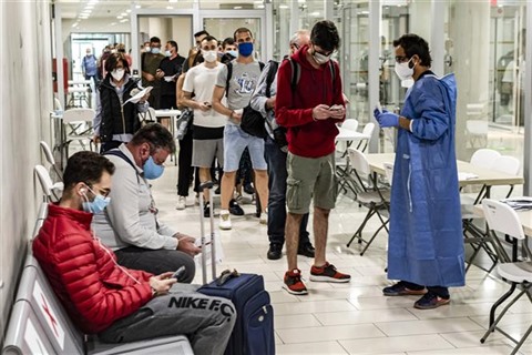 | Contrôler l'attestation médicale des passagers à l'aéroport international de Larcana, à Chypre, le 9 juin. |