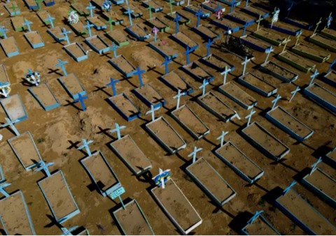 | Des tombes de personnes décédées du COVID-19 au cimetière de Nossa Senhora Aparecida, le 15 avril à Manaus, au Brésil. |