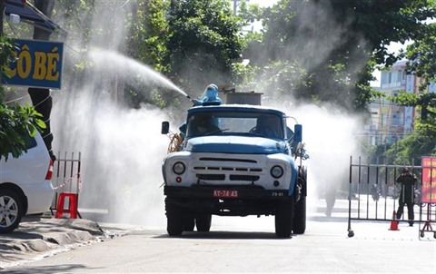 | Désinfection d'un quartier de la ville de Tuy Hoa, province de Phu Yên (Nord). |