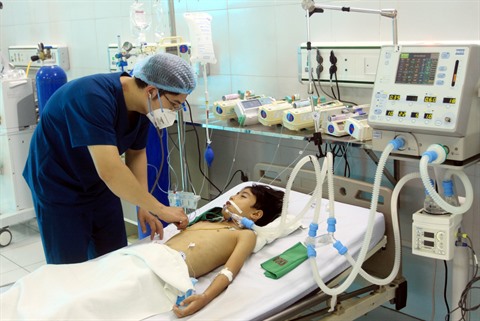| Un médecin soigne un patient post-COVID-19 à Thai Binh, au Sud. |