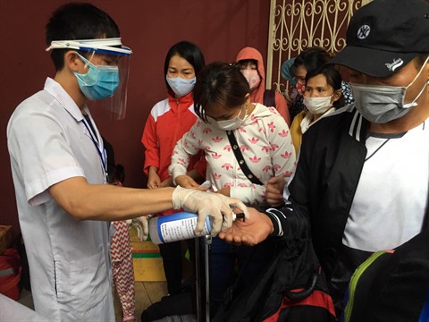 | Désinfecter entièrement les passagers à la gare de Huê, province de Thua Thiên-Huê (Centre), le 22 avril. |