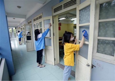 | Une école dans la province de Hung Yên (Nord) fait nettoyer les classes pour pouvoir accueillir ses élèves au début de mai. |