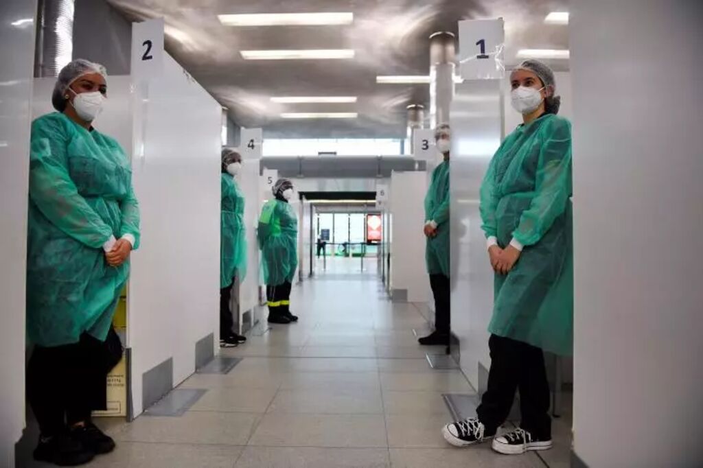| Le personnel médical dans un centre de test COVID-19 à l'aéroport Roissy-Charles de Gaulle le 1er janvier 2023. |