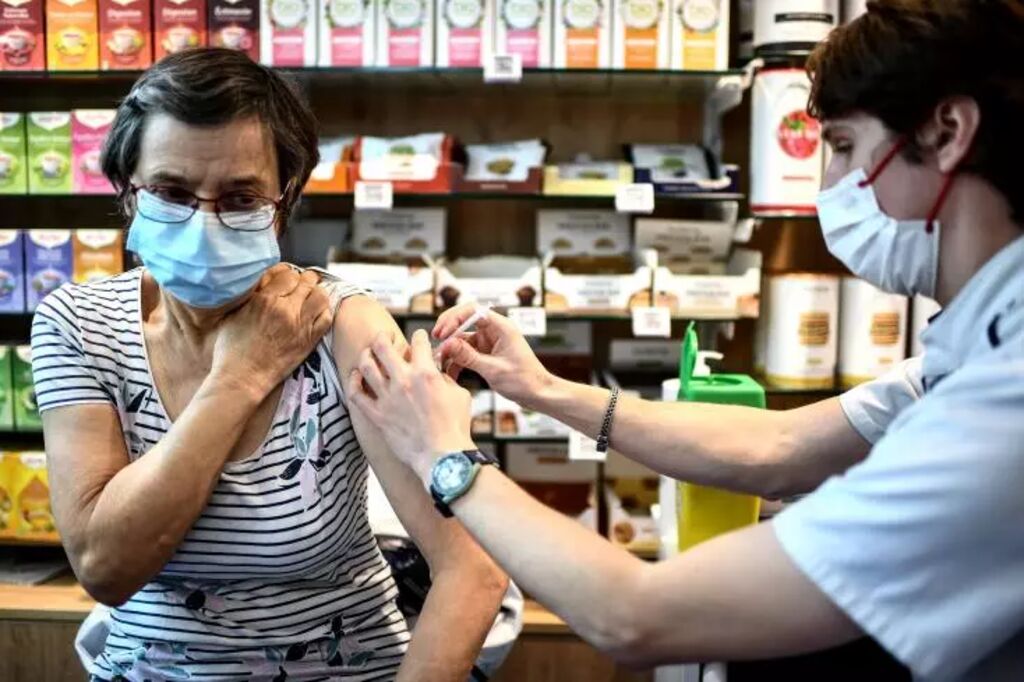 | Une femme reçoit une dose de vaccin contre le COVID-19 dans une pharmacie à Paris le 19 octobre 2022. |