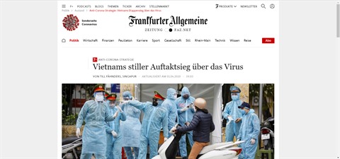 Au cours du mois dernier, nombre d’agences de presse, journaux, sites web et instituts de recherche en Allemagne tels que Deutsche Presse-Agentur (DPA), Frankfurter Allgemeine Zeitung (FAZ), Deutsche Welle (DW), Junge Welt et Konrad Adenauer Stiftung, ont publié des articles appréciant la stratégie anti-épidémique du Vietnam.