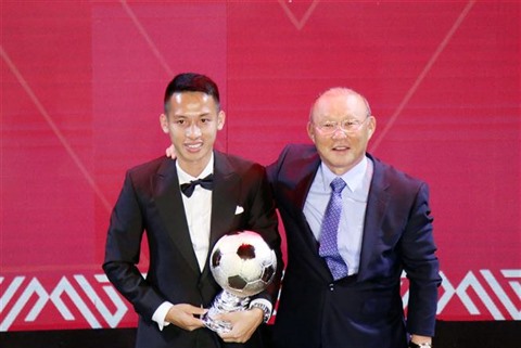| Le footballeur Dô Hùng Dung (gauche), le Ballon d’Or du Vietnam 2019. |